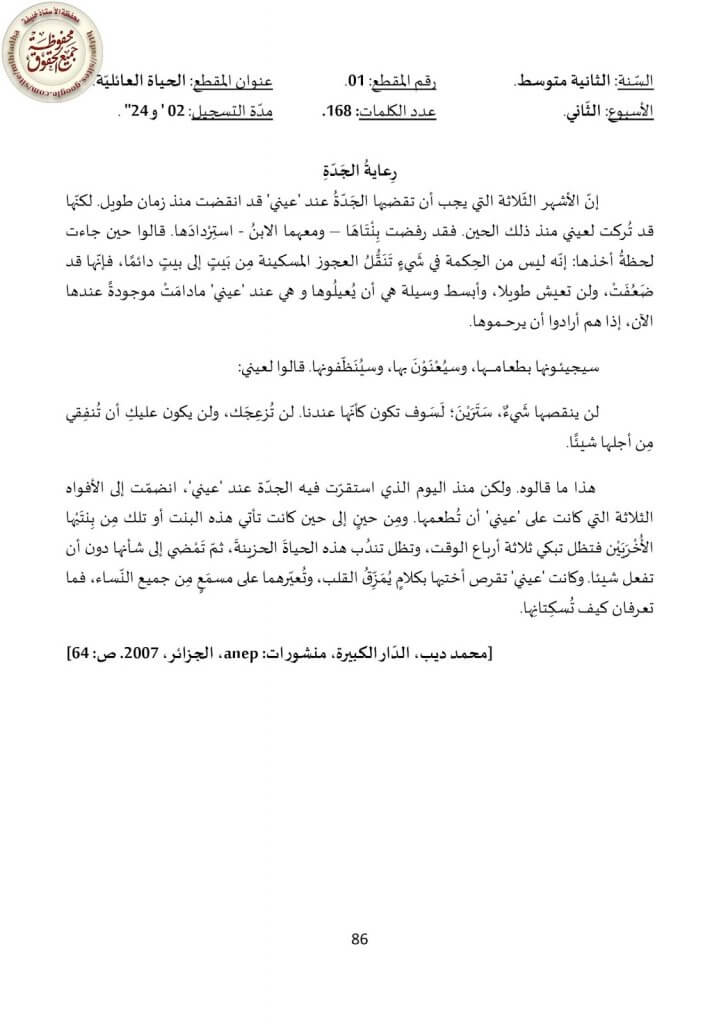 تحضير نص رعاية الجدة السنة الثانية متوسط – الجيل الثاني