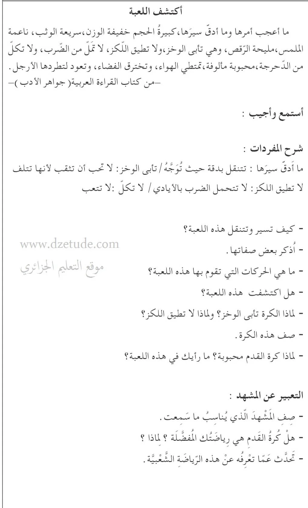 نص فهم المنطوق: أكتشف اللعبة السنة الرابعة إبتدائي – الجيل الثاني