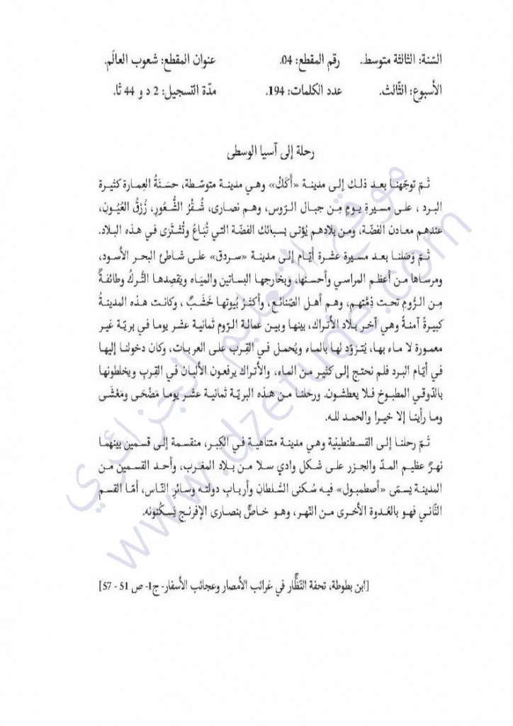تحضير نص رحلة إلى آسيا الوسطى – إبن بطوطة