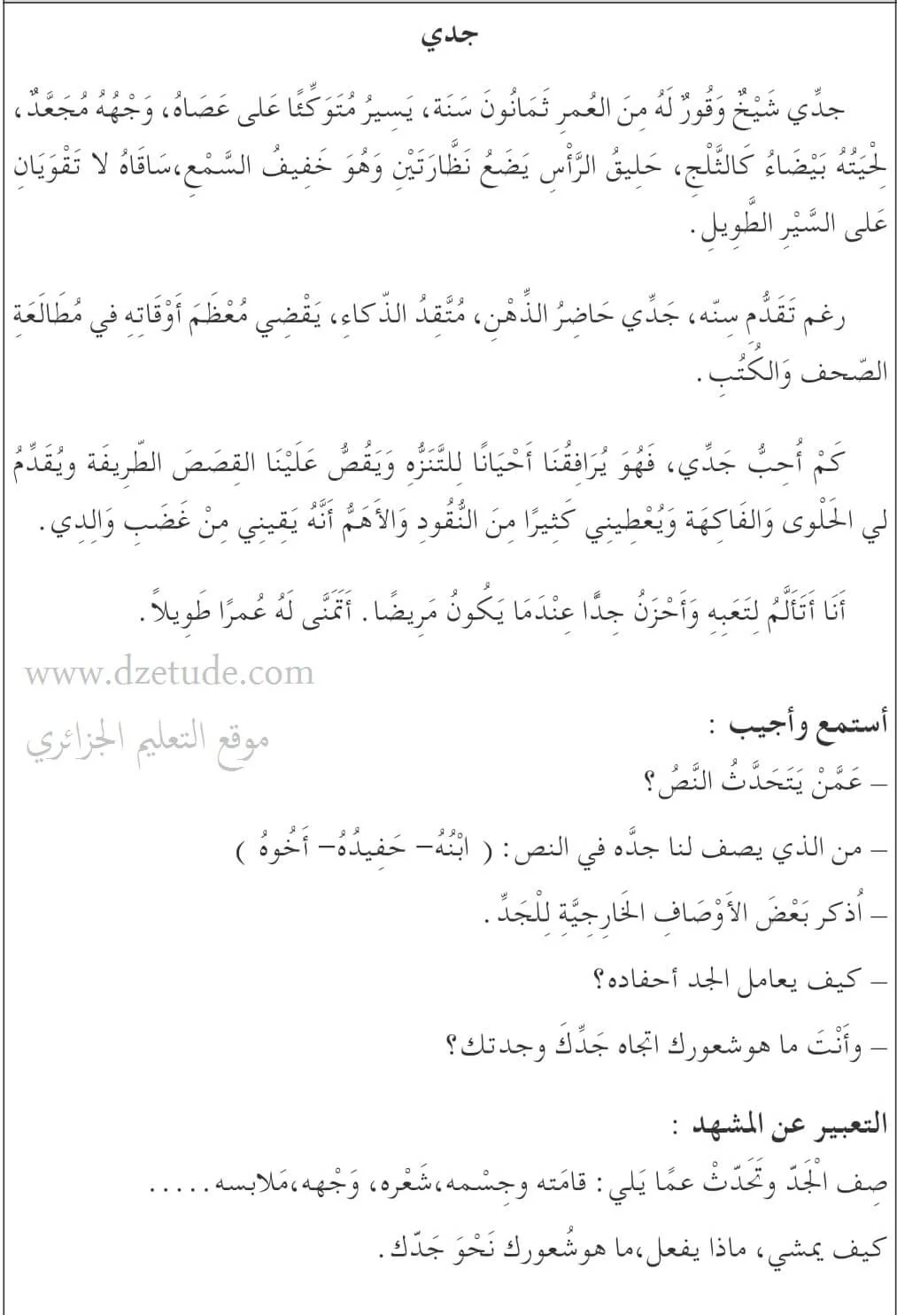 نص فهم المنطوق: جدي السنة الرابعة إبتدائي – الجيل الثاني
