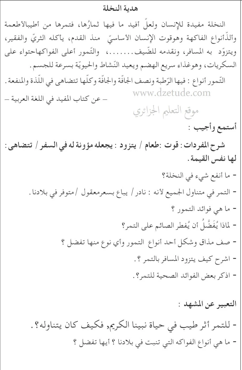 تحضير نص هدية النخلة السنة الرابعة إبتدائي الجيل الثاني :