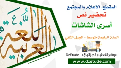 تحضير نص أسرى الشاشات السنة الرابعة متوسط – الجيل الثاني
